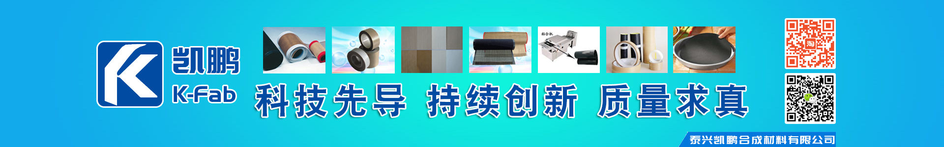 泰興市凱鵬合成材料有限公司是以聚四氟乙烯(PTFE)和硅橡膠涂層制品為特色的集生產和貿易為一體的復合型企業,立足于氟、硅系列浸漬制品的研發、生產和銷售,是中國氟、硅合成材料的開拓者、行業中的佼佼者。 公司主要產品有: PTFE特氟龍耐高溫布、層壓布、 硅膠布、特氟龍網格輸送帶、粘合機帶、特氟龍膜膠帶、特氟龍粘膠帶、特氟龍烤盤片、硅膠布粘膠帶和凱芙拉布等產品。產品被廣泛應用在航天、航空、太陽能、汽車、電子、電器、高溫絕緣材料、食品包裝、塑料制品、造紙、印刷、印染、服裝、化工防腐等工程。 公司秉承“以質量求生存,以信譽求發展,以用戶為上帝,以務實為人品!”的經營理念,本著“科技先導,持續創新,質量求真,顧客滿意”的質量方針。目前公司產品已遠銷歐美、中東、東南亞、臺灣、香港等幾十個國家和地區,在國內外市場上獨占鰲頭。熱忱歡迎廣大客戶前來考察、指導、洽談業務。經營理念:品質至尊、誠信為本發展戰略:立足氟硅、同心多圓、引領市場、創造特色質量方針:科技為先,質量為本,服務為榮,改進